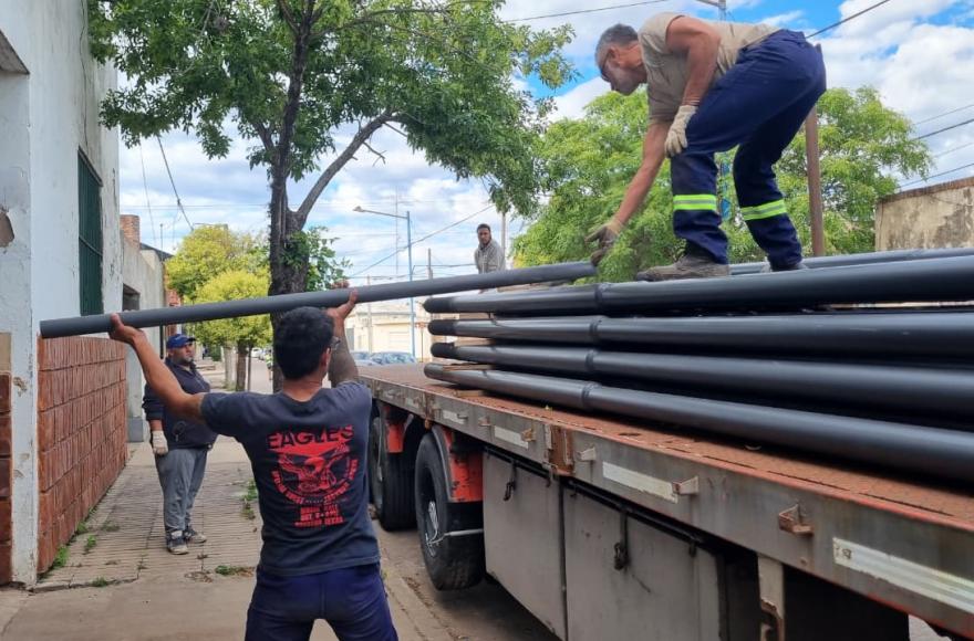 Llegaron más de 80 nuevos postes para continuar con el programa Luz Verde que comenzó el año pasado y que busca renovar el alumbrado público en todo el distrito.
