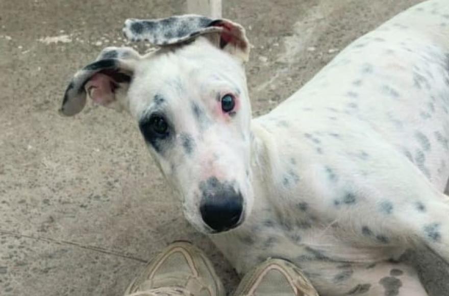 La familia del perro “Pirata”, un cachorro de pelaje blanco con manchas negras, lo busca desesperadamente.