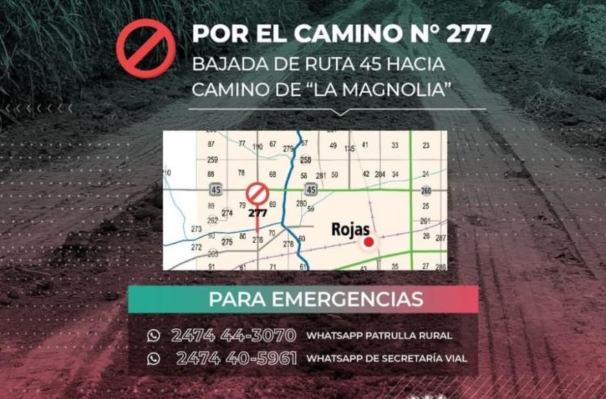 El camino Nº 277 bajada de Ruta Nº45 hacia La Magniolia, se encuentra temporalmente cortado por reparaciones.