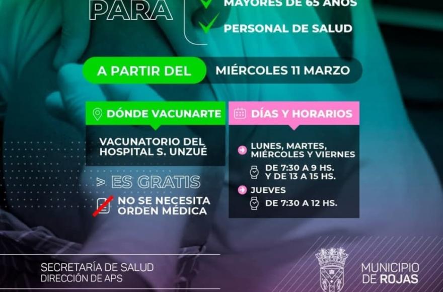 En estos primeros días está destinada para mayores de 65 años y personal de salud y se irá ampliando al resto de los grupos etarios (muy pronto informaremos cuándo inician)