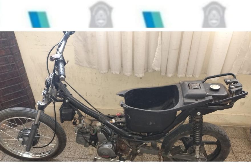 Abocado a las recorridas preventivas, personal policial divisa entre pastizales de terreno de calle Lonko Lewuel y Balcarce motocicleta semi oculta. Cursando número de motor KN152FMHS0041524 y cuadro 8E71CDA72T0003422, consulta resultado positivo, coincidente rodado por el denunciado por la denunciante, efectuando por tal secuestro de vehículo y posterior entrega dispuesta por la Ayudantía Fiscal de Rojas.