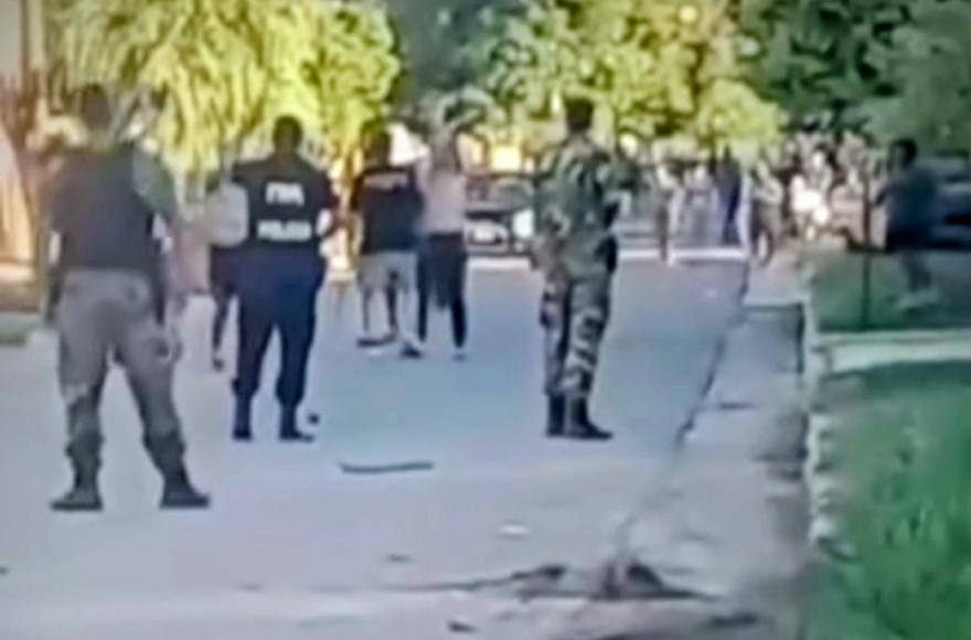 Al arribo, se unen y comienzan a arrojar piedras contra los efectivos, a referir insultos y amenazas hacia los uniformados exhibiendo palos y machetes.