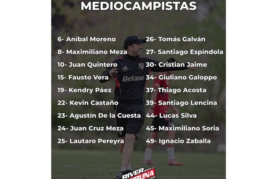 El entrenador de River Plate, Eduardo Coudet, presentó la lista de buena fe para la Copa Sudamericana y entre los 50 futbolistas incluidos se encuentra el rojense Santiago Espíndola.