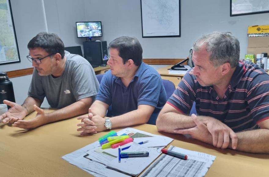 El intendente Román Bouvier, junto con Leonardo Véliz y Esteban Di Camillo, tuvieron una reunión con Pablo Figueroa (nuevo secretario Vial) y Gustavo Poiré (capataz) para definir los lineamientos de trabajo del área.