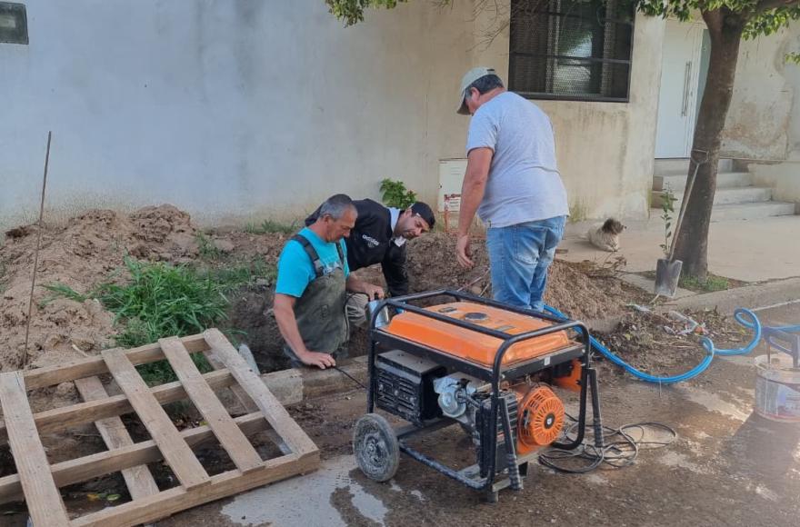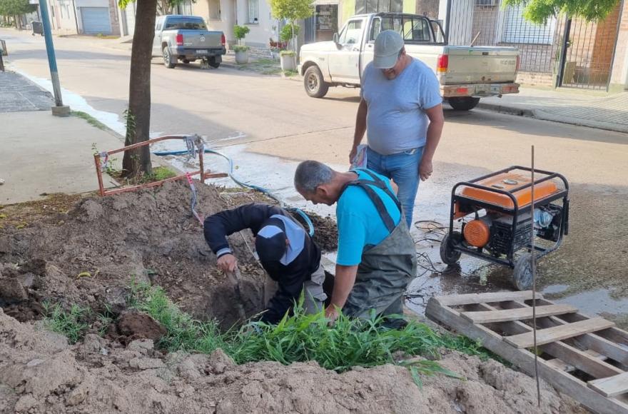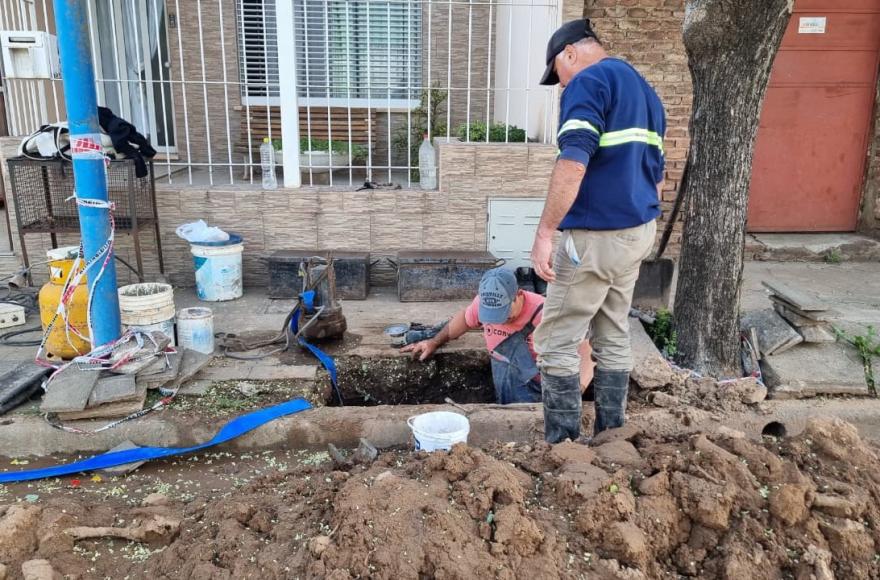 Las tareas se llevaron a cabo en Fernando de Rojas 674 y Sarmiento 575, lo que implicó un corte general del servicio de agua desde temprano para poder avanzar con las reparaciones necesarias.