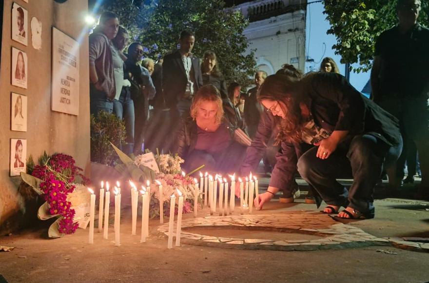 Uno de los momentos más emotivos fue el encuentro de vecinos, familiares de víctimas, funcionarios e instituciones unidos en el encendido de velas y la colocación de una ofrenda floral en el monolito que recuerda a las víctimas locales.